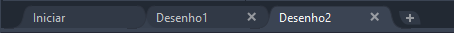 As guias Arquivo fornecem uma maneira fácil de acessar todos os desenhos abertos no aplicativo. A guia de arquivo normalmente exibe o nome completo do arquivo. Clicar no sinal de mais (+) na extremidade direita da barra de guias do arquivo abrirá um novo desenho com base no arquivo de template especificado usado pelo comando NOVOR.