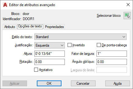 Configura as propriedades que definem a forma como o texto de um atributo é exibido no desenho. Altere a cor do texto do atributo na guia Propriedades.