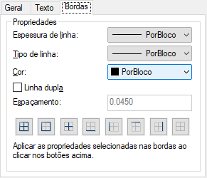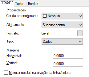 Controla a aparência das bordas das células. As propriedades de borda são espessura de linha e cor das linhas de grade.