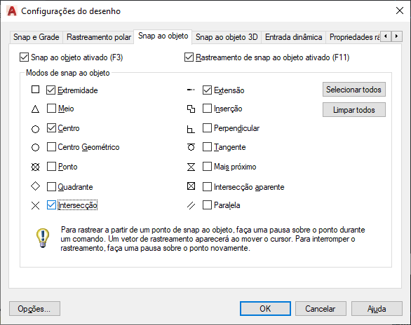 Guia Snap ao objeto (caixa de diálogo Configurações do desenho)