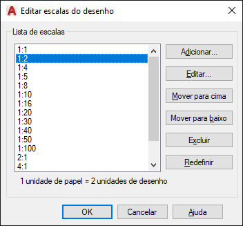 Controla a lista de escalas disponíveis para viewports de layout, layouts de página e plotagem