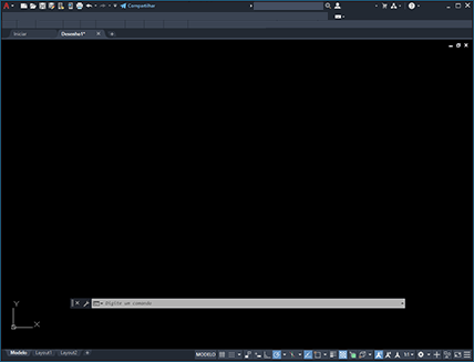 A janela de comandos encaixada tem a mesma largura da janela do aplicativo. Ela é exibida em uma posição fixa acima ou abaixo da área de desenho.