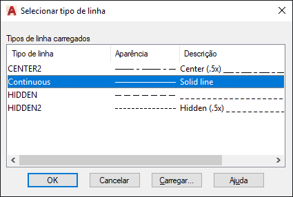 Exibe a lista de tipos de linha carregados no desenho atual.