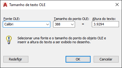 O objeto OLE é redimensionado automaticamente para acomodar o tamanho do texto.