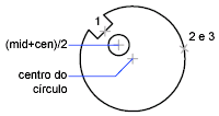 Por exemplo, você digita (mid+cen)/2 para especificar um ponto na metade do percurso entre o meio de uma linha e o centro de um círculo.