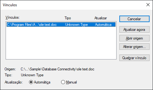 Atualiza o vínculo automaticamente sempre que a origem é alterada.