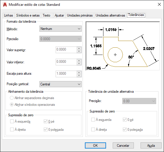 Controla a supressão de zeros à esquerda e à direita e de pés e polegadas que possuem o valor igual a zero. (variável de sistema DIMALTTZ)