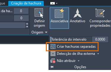 Na faixa de opções Editor de hachura, expanda o painel Opções e selecione Separar hachuras.