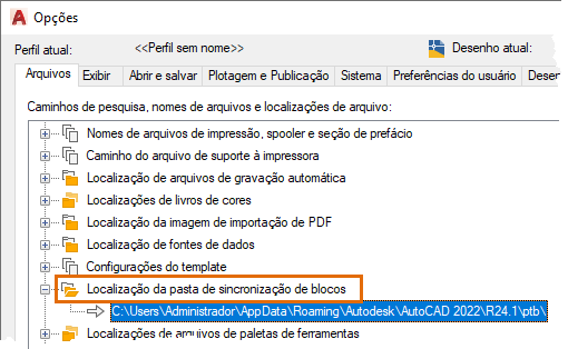 Nesse caso, é possível alterar a localização da pasta de blocos recentes na guia Arquivos da caixa de diálogo Opções e especificar uma localização de armazenamento na nuvem para sincronizar os blocos.