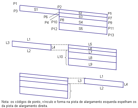 Largura da pista de alargamento esquerda |