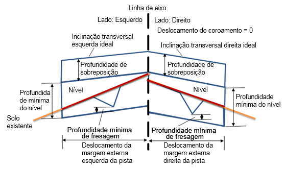 Essa camada de sobreposição presume que o flapping é aplicado dentro da tolerância de inclinação. A elevação no coroamento encontrará os dois lados da rodovia.