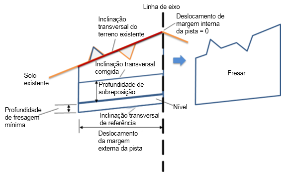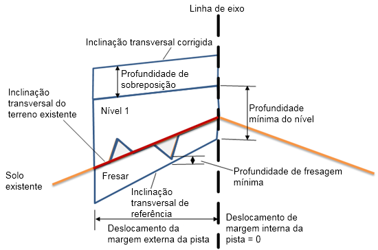 | Profundidade mínima do nível | A profundidade mínima do nível entre a parte inferior da camada de fresagem e a parte inferior da camada de sobreposição. | Numérico | 0.600 m |