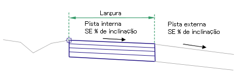 A inclinação da superelevação da pista interna é obtida com as especificações da superelevação para o alinhamento da linha base. Começando no ponto de anexação, uma superfície de declividade final e uma subdeclividade paralela são inseridas usando a largura e profundidade especificadas, e a inclinação de superelevação. Os vínculos verticais fecham a forma em qualquer extremidade da pista.