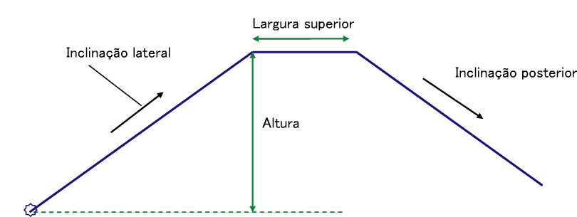 | Inclinação lateral | Inclinação padrão do vínculo de inclinação lateral da barreira. | Numérico | 1:1.5 |