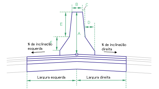 | Direção de inclinação do acostamento | Especifica se as inclinações de acostamento estão longe do coroamento ou em direção a este |