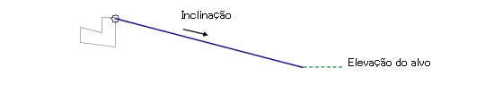 Um vínculo é adicionado ao ponto de anexação na direção da inserção para a inclinação até alcançar a elevação do alvo ou perfil. O valor da inclinação é aplicado para cima se a elevação do alvo estiver acima do ponto de anexação. Caso contrário, uma inclinação negativa é utilizada.