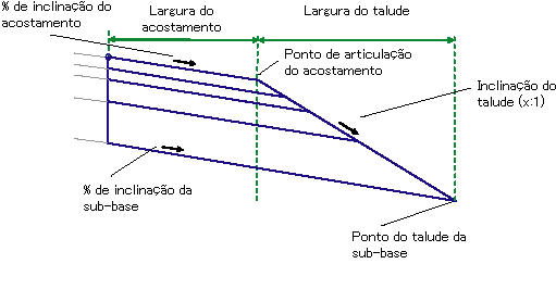 | Direção de inclinação do acostamento |