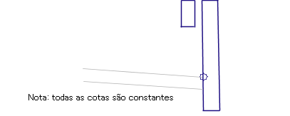 A submontagem cria duas formas retangulares para o pilar e o gradil. As cotas são fixas e não podem ser alteradas pelo usuário. O pilar é estendido para baixo, a partir do ponto de anexação, a uma distância fixa abaixo da declividade final.
