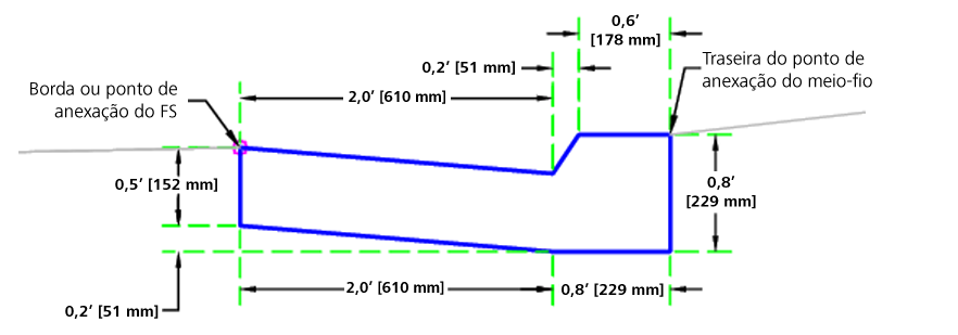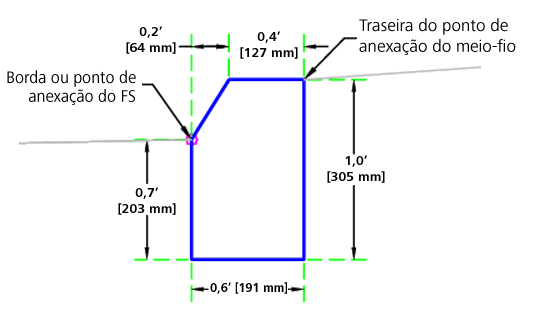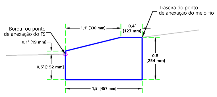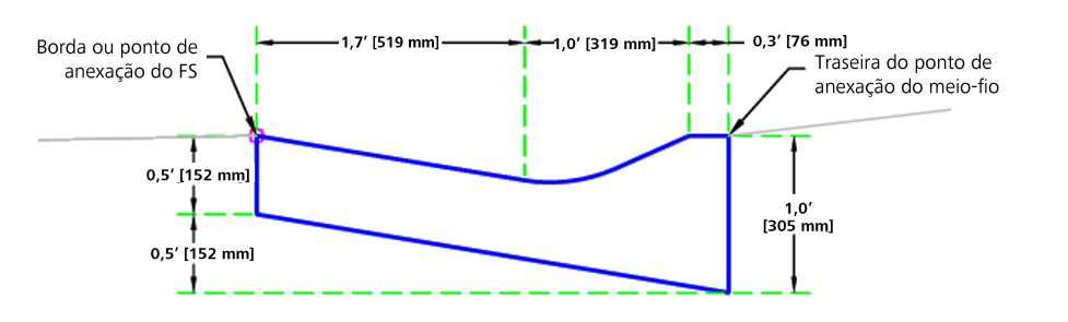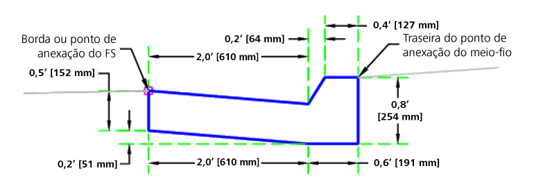 A submontagem CaltransCurbs insere links para criar meios-fios e sarjetas com base no Plano padrão RSP A87A do Caltrans.