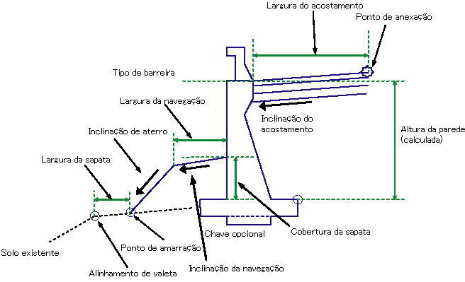 | Largura do acostamento | Largura do acostamento a partir do ponto de anexação | Numérico, positivo |