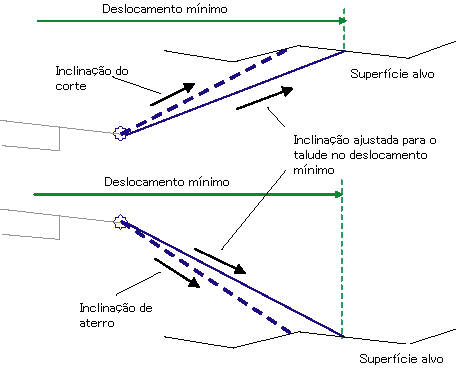 O deslocamento mínimo permitido para o ponto de talude. |