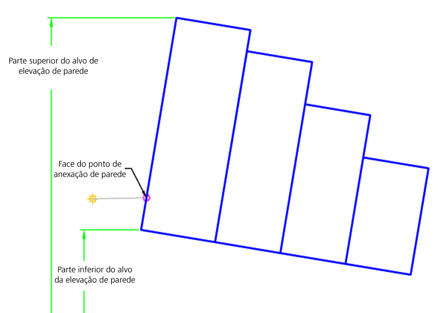 | Parte superior da parede | Pode ser usada para definir a parte superior de elevação da parede. Os seguintes tipos de objeto podem ser usados como alvos para especificar a elevação: perfis, polilinhas 3D, linhas do recurso ou imagens de levantamento topográfico. | Opcional (ponto de anexação = face da parede) |