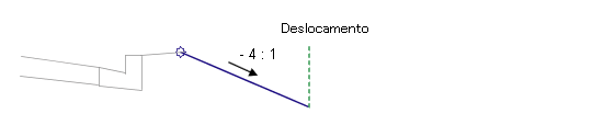 No modo de layout, esta submontagem exibe o vínculo desenhado para o deslocamento na inclinação -4: 1. O vínculo termina com uma ponta de seta apontando para fora.