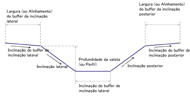 | Largura do buffer da inclinação lateral | Permite que um buffer seja colocado antes da inclinação lateral (zero para omitir) | Numérico, positivo |
