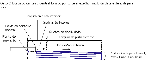 Largura da pista interior para a condição em que não há um canteiro central; isto é, desde o ponto de anexação até o ponto de quebra de nível. |