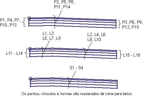 A tabela a seguir lista o ponto, o vínculo, e os códigos da forma para esta submontagem que tenha códigos atribuídos à ela. Ponto, vínculo ou códigos da forma para esta submontagem que não possuam códigos atribuídos não estarão incluídos nesta tabela.