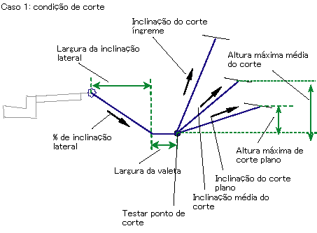 Essa submontagem cria vínculos de talude de corredor lateral com configurações de inclinação definidas pelo usuário, tais como plano, média e inclinações máximas para o corte e situações de preenchimento.