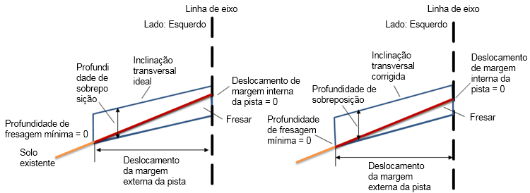 O valor definido para a inclinação transversal corrigida é sempre igual ao valor definido para a inclinação transversal ideal.
