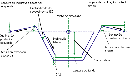 | Inclinação posterior esquerda | Inclinação do canal de aterro no lado esquerdo | Numérico | 4 (:1) |