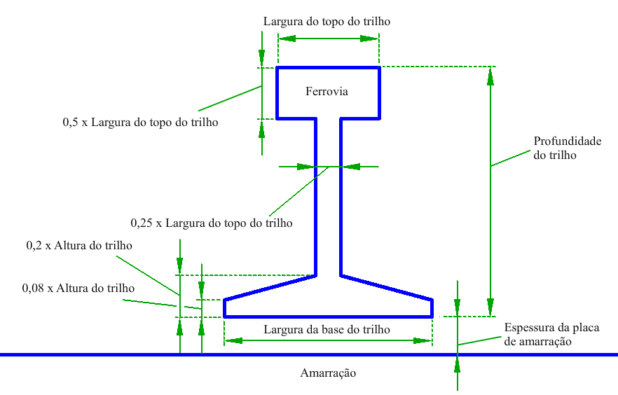 | Largura base da ferrovia | Largura da base da ferrovia | Numérico, não negativo |