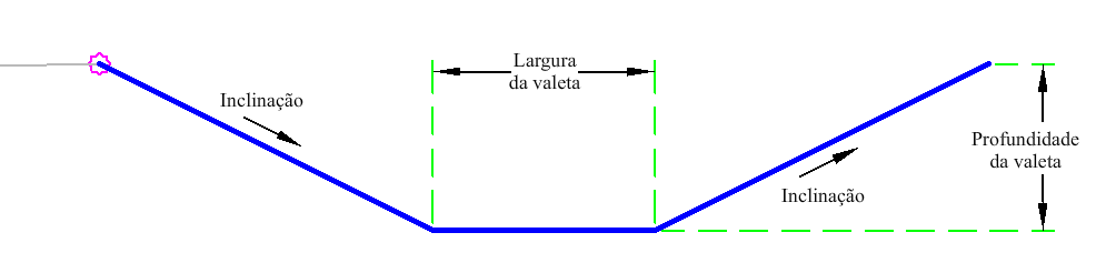 A submontagem EvenSlopeDitch cria uma vala a ser adicionada no lado esquerdo e direito da montagem.