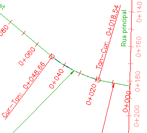 A categoria Texto dos pontos notáveis do alinhamento lista as abreviaturas em uso no momento para cada tipo de ponto da geometria.