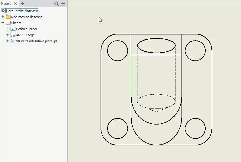 Use a nova opção do menu de contexto Capturar estado atual para gerar código do iLogic para as novas funções de desenho. O código permite acessar linhas e curvas do desenho em uma vista, dados os nomes das entidades de modelo correspondentes. Em seguida, você pode anexar cotas e anotações às linhas e às curvas.