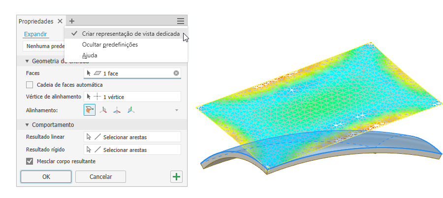 A opção Criar representação de vista dedicada torna mais fácil isolar e documentar a superfície de saída.