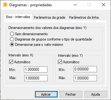 A seguinte caixa de diálogo é exibida após a guia Eixo – intervalos ser selecionada na caixa de diálogo Diagramas – propriedades.