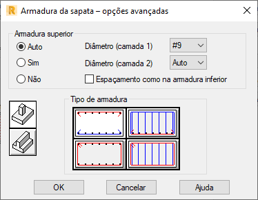 Se a opção Auto estiver selecionada, a necessidade da armadura superior será determinada automaticamente.