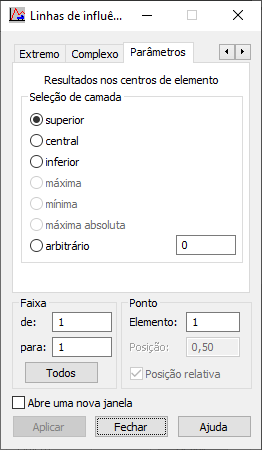 - Arbitrário – A linha de influência é criada para uma camada arbitrária do EF; a coordenada dessa camada pode ser definida no campo.