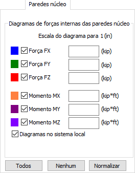 Essa caixa de diálogo exibe os valores para os quais serão apresentados os diagramas das paredes núcleo.