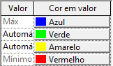 Apresenta os resultados da análise em faixas de cores específicas dos valores máximos para os mínimos. ![]() |
