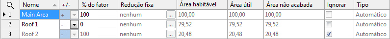 A Areabook detecta, calcula e legenda as subáreas em ambientes sob os telhados. Para visualizar os dados das subáreas das linhas de altura: