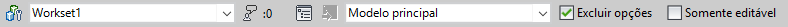 A barra de status sempre exibe o workset ativo e fornece acesso com um clique à caixa de diálogo Worksets.