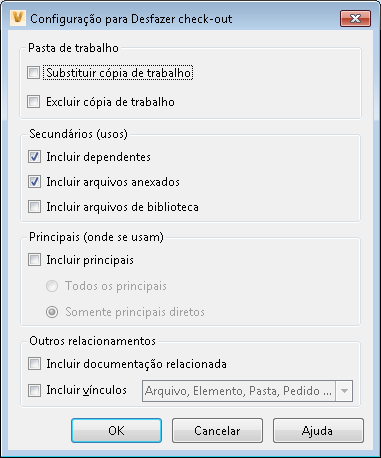 Ao desativar a caixa de diálogo Desfazer check-out, você pode especificar como a operação do Vault correspondente afeta os arquivos relacionados.