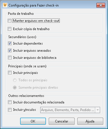 Ao desativar a caixa de diálogo Fazer check-in, você pode especificar como a operação do Vault correspondente afeta os arquivos relacionados.