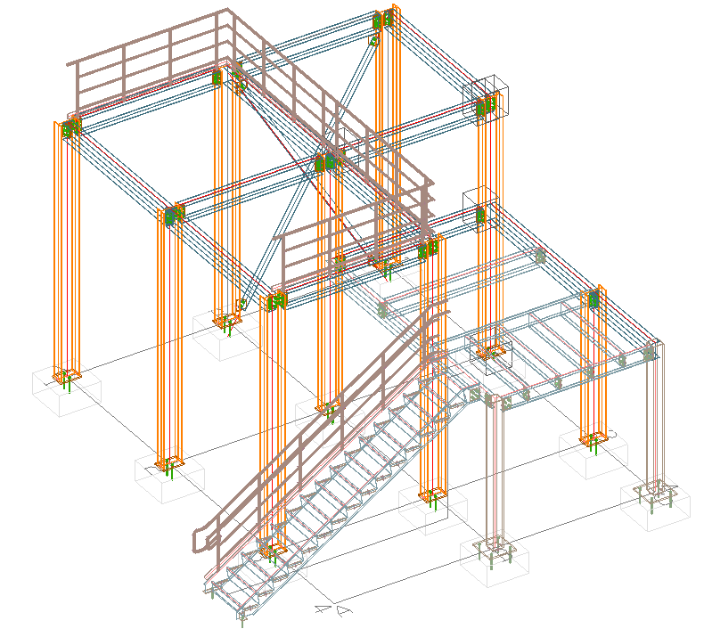 The column was checked out completely in the previous example to enable the user to modify the section. Next, partially check out the elements that you want to connect (the other rafter) knowing that another user will work on the other end of the rafter. Therefore, the rafter can be checked out partially by another user who can add connections or features at the other end of the element.