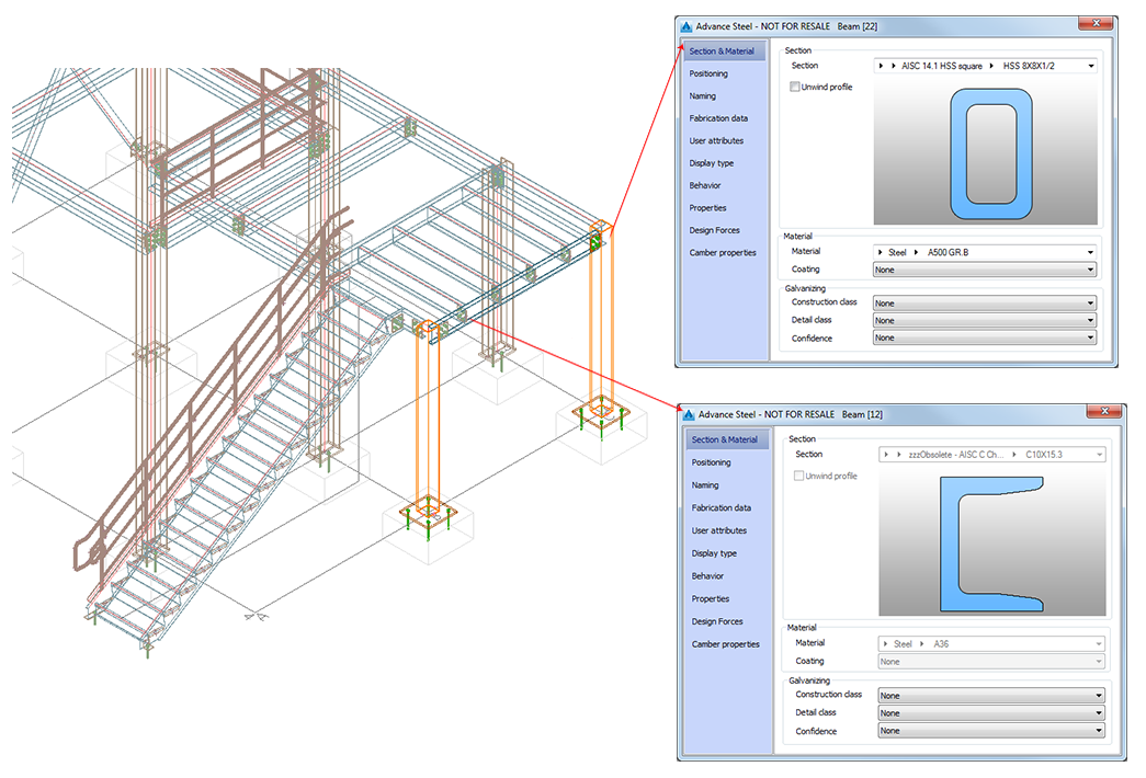 3. Double-click on the beam that is not checked out, to display its properties. Next, double-click on the column that you checked out to display its properties.