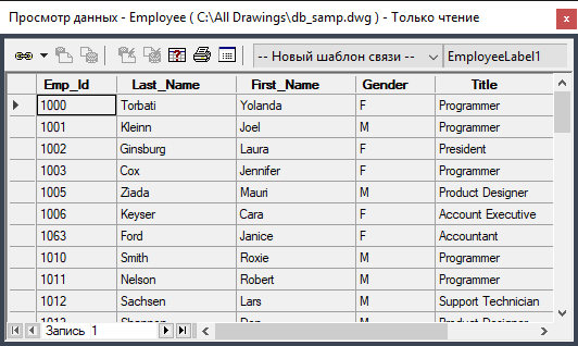 После настройки источника данных, используя окно просмотра данных, можно просматривать и редактировать записи базы данных непосредственно из программы.